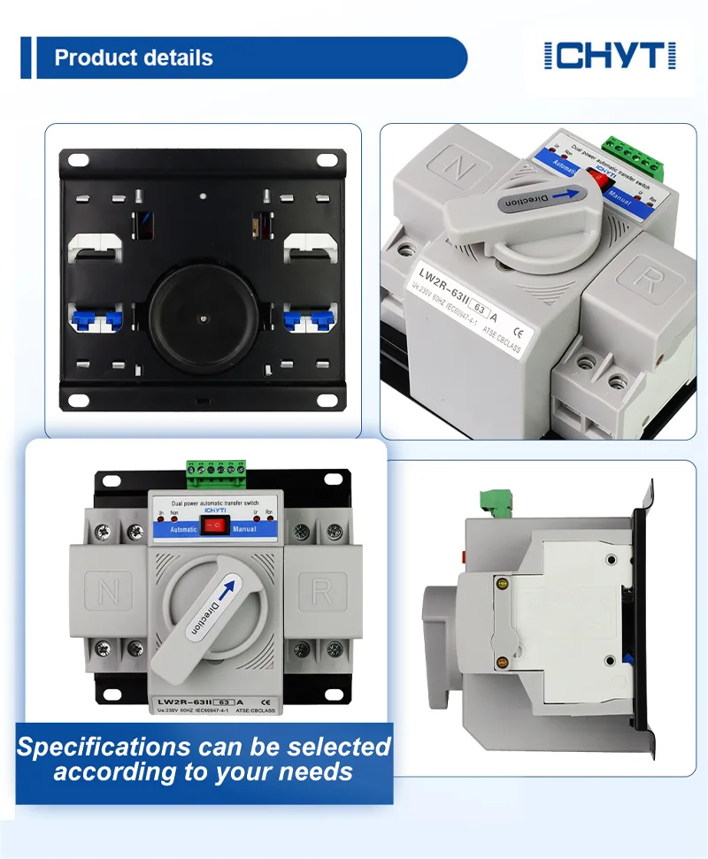 ICHYTI Tiekėjai supažindina jus su aukštos kokybės ats automatinio generatoriaus perjungimo jungikliu, tikėdamiesi suteikti jums gilesnį supratimą apie ats automatinio generatoriaus perdavimo jungiklio charakteristikas ir pranašumus. ICHYTI sveikina naujus ir senus klientus toliau bendradarbiauti su mumis ir kartu kurti geresnę ateitį. Mūsų produktai yra eksportuojami į daugiau nei 70 šalių ir regionų ir yra išlaikę daugiau nei dešimt tarptautinių sertifikatų, tokių kaip CE, TUV ir CB sistemos sertifikatai.